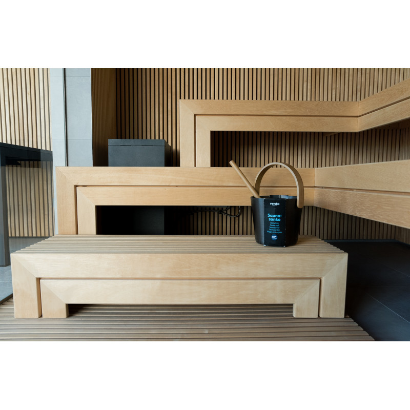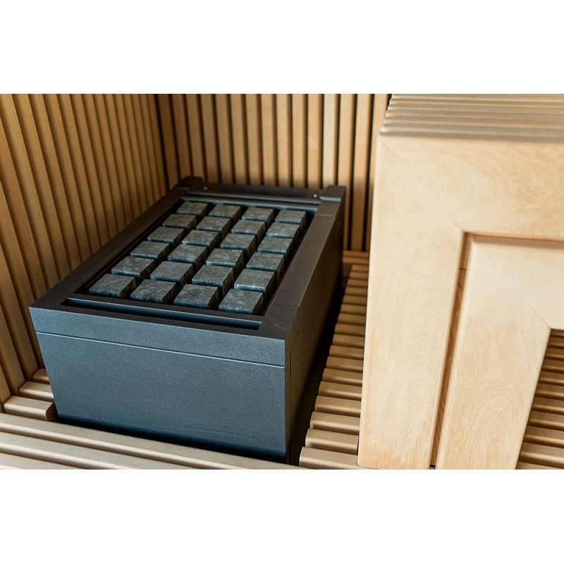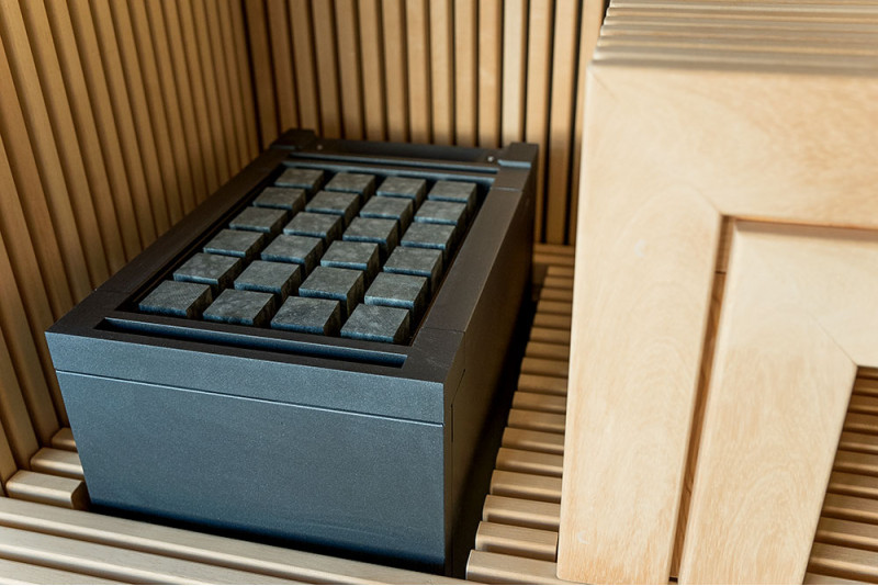 - le poêle a des pierres uniques en forme de cube, mais il était en outre équipé de pierres de jadéite (40 kg) - pour un maintien constant de la température et un plaisir confortable du sauna