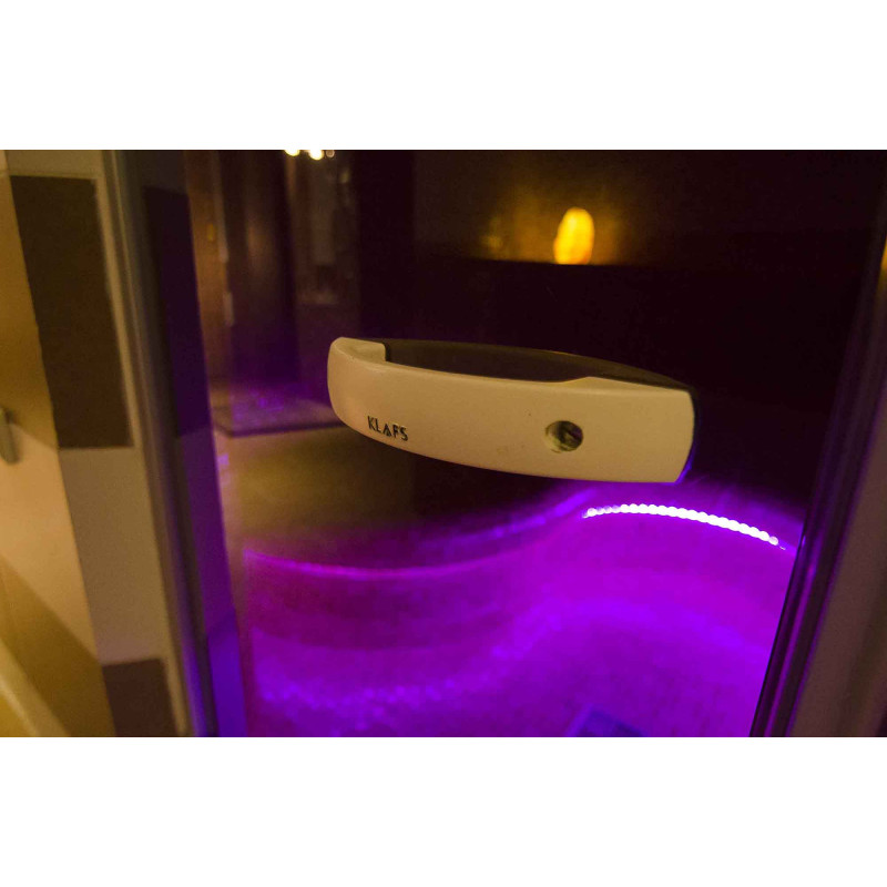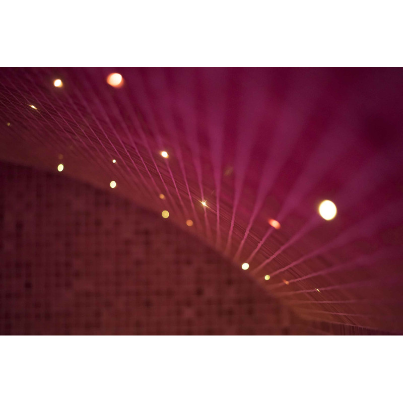 Système d'éclairage - le plafond est éclairé par un système d'éclairage à fibre optique "Starry Sky". L'éclairage à fibre optique est une solution durable, polyvalente, économique et simple. Grâce à lui, vous pouvez extraire les options d'éclairage les plus impressionnantes. Le "ciel étoilé" crée un environnement confortable et complète parfaitement l'expérience de se réchauffer dans le sauna. Sous les banquettes, un éclairage coloré éclaire le sol. Les couleurs peuvent être modifiées.