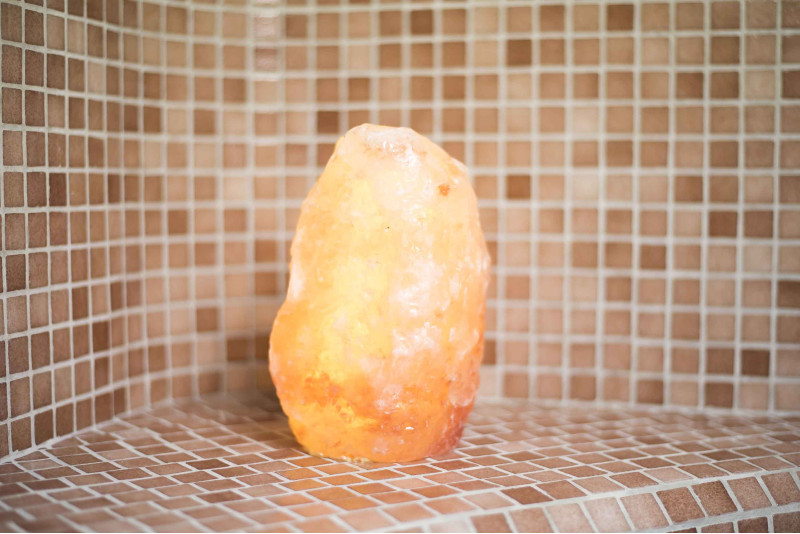 Le sauna est décoré de lampes au sel de l'Himalaya, qui non seulement apportent lumière et confort, mais sont également bénéfiques pour la santé. Les cristaux de sel réchauffés émettent des ions négatifs qui agissent comme un équilibreur, créant un climat naturel comme dans les montagnes, près de la mer ou dans les cascades.