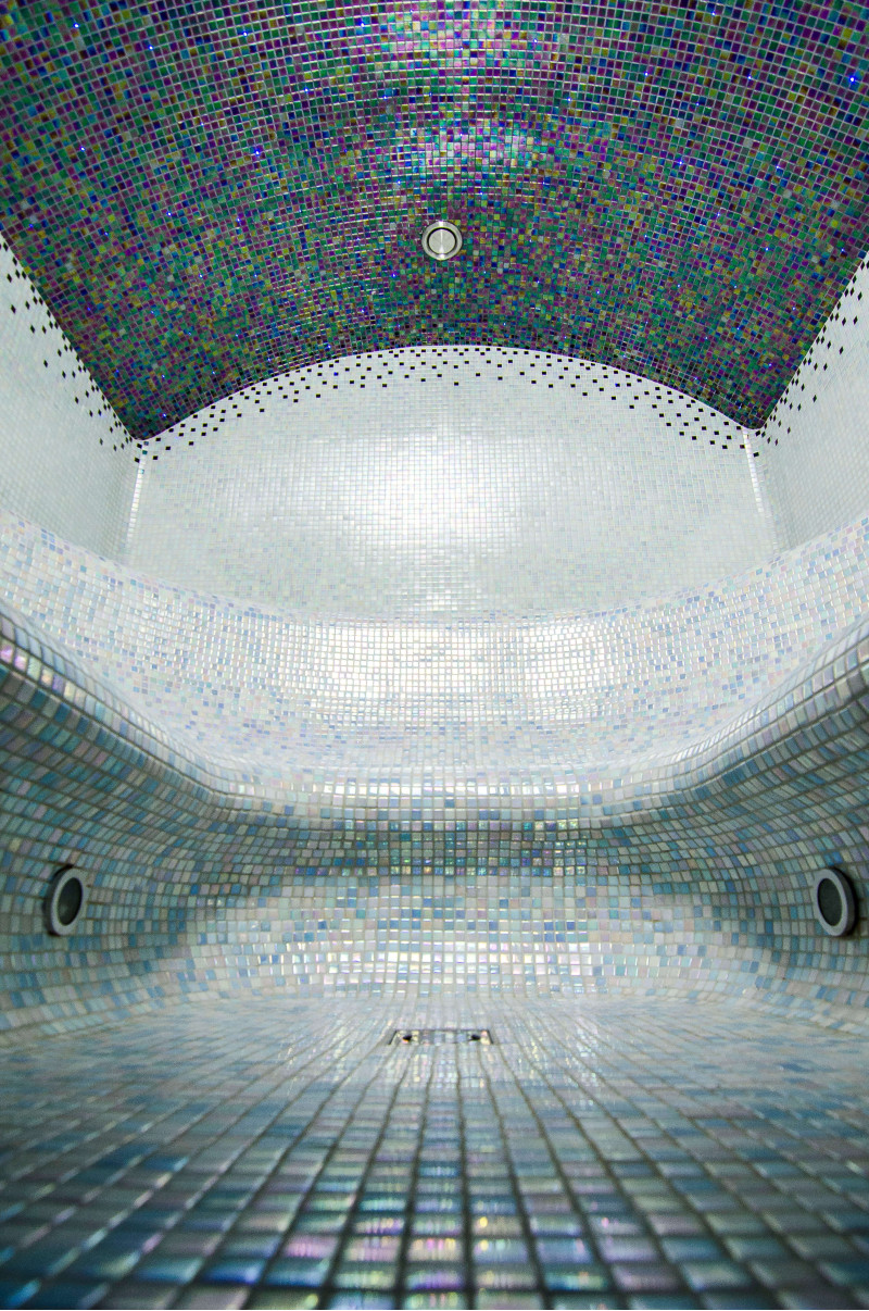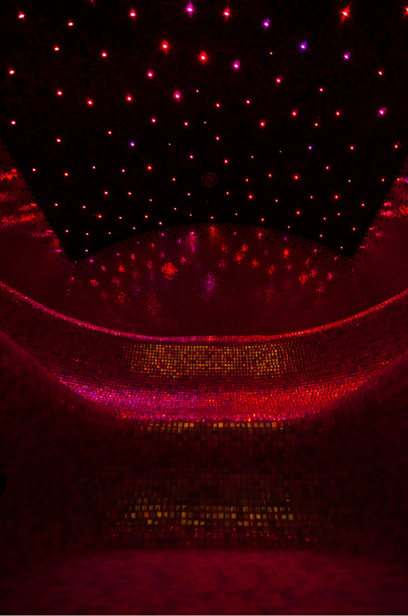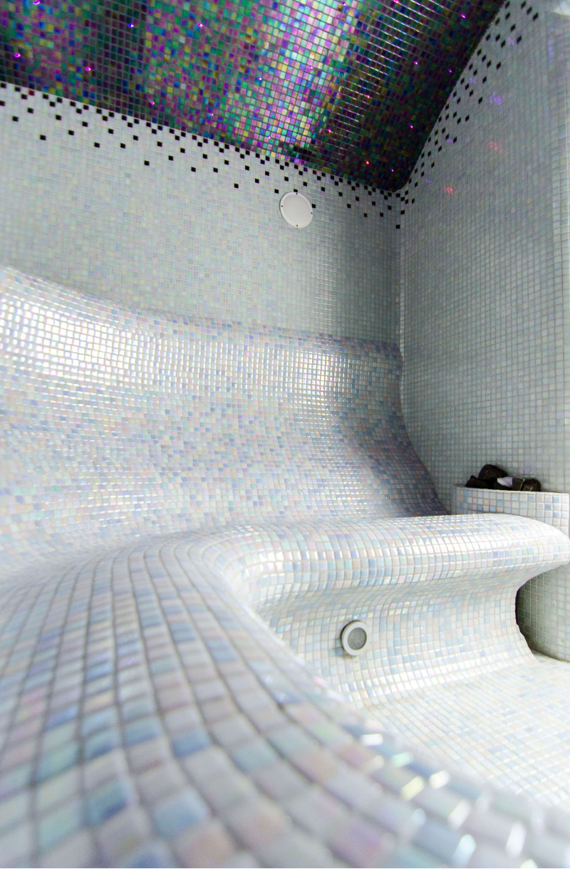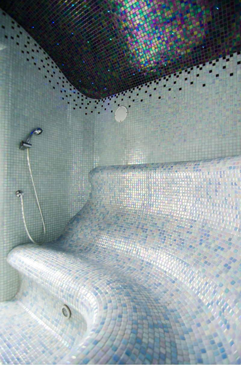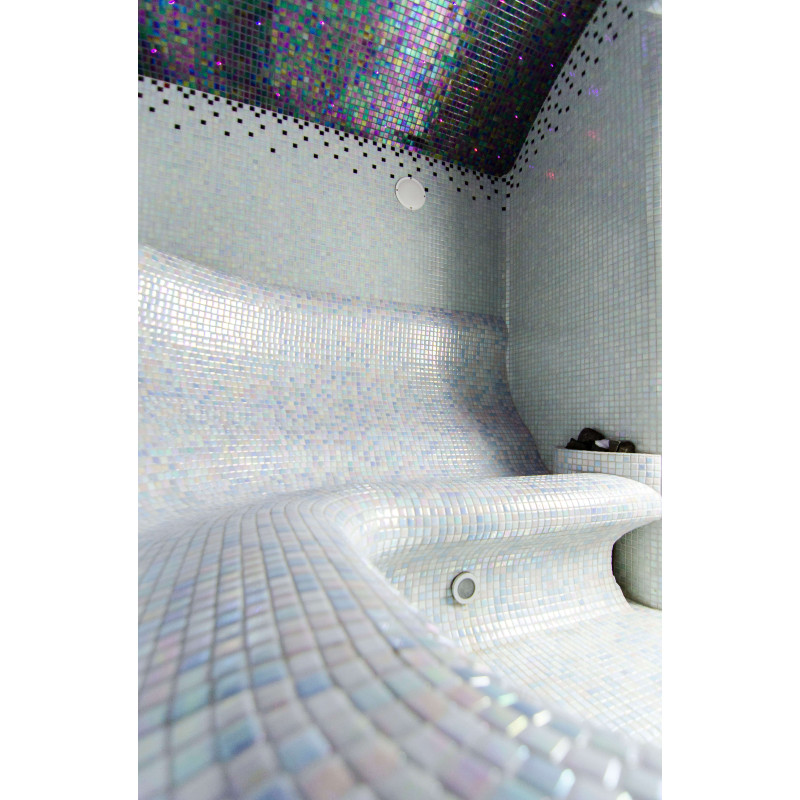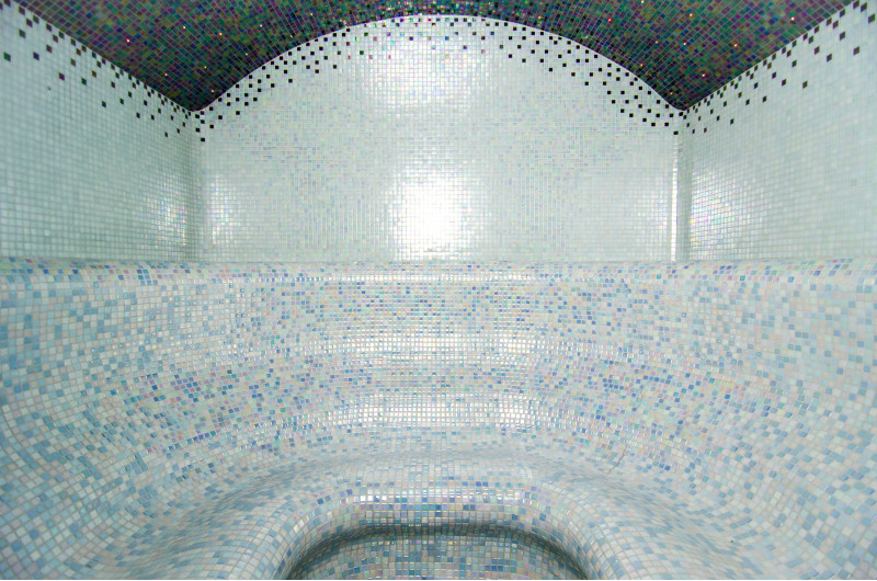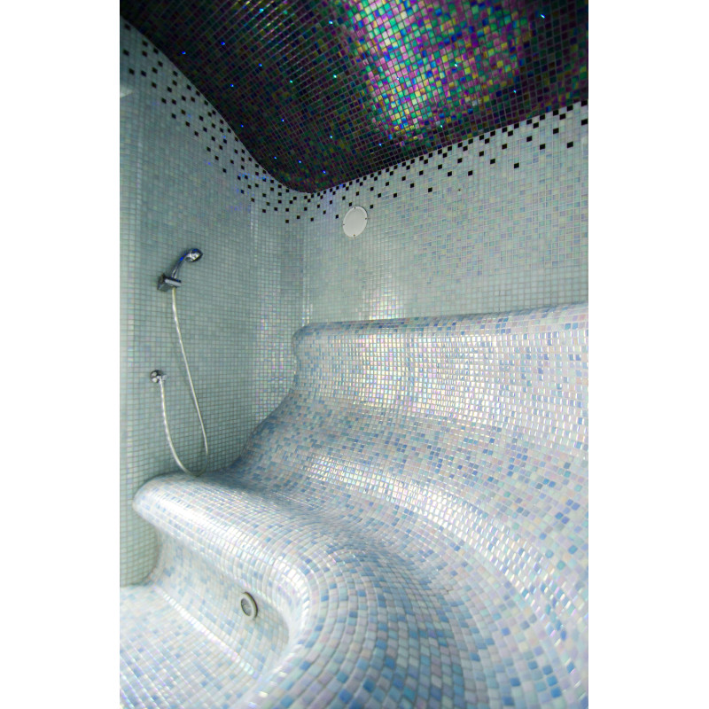 Les bancs, les murs et les plafonds des saunas à vapeur sont fabriqués individuellement à partir de polystyrène extrudé spécial. Les plafonds sont en forme d'arc, typiques de chaque hammam, de sorte qu'aucun condensat de vapeur ne puisse s'y accumuler. Positions assises, banquettes courbes aux formes confortables pour un repos agréable dans le sauna. Les bancs sont drainés pour éviter que la sueur et l'humidité ne s'y accumulent.