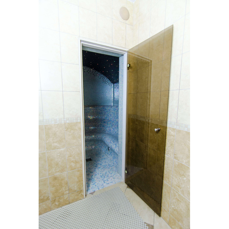 Les portes vitrées sont fabriquées sur commande individuelle. La porte résiste à l'humidité et aux variations de température. Cadre de porte - marbre.