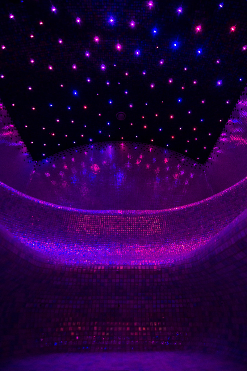 Éclairage - éclairage à fibres optiques colorées "Ciel étoilé", dont la couleur et l'effet peuvent être modifiés selon les souhaits et l'humeur de chaque personne.