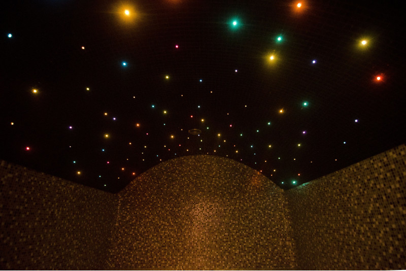 Éclairage - un impressionnant système de fibre optique "ciel étoilé". Il est particulièrement joli avec un plafond sombre. La couleur de l'éclairage peut être modifiée.