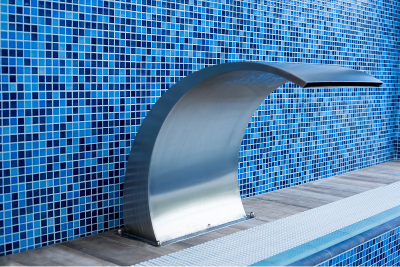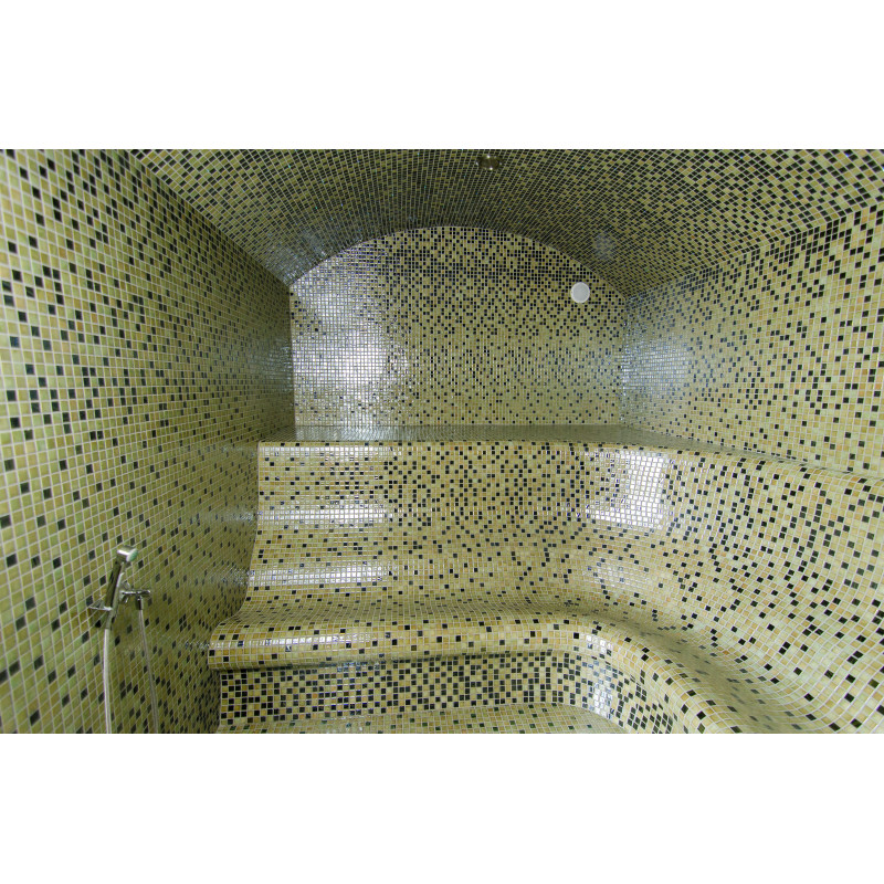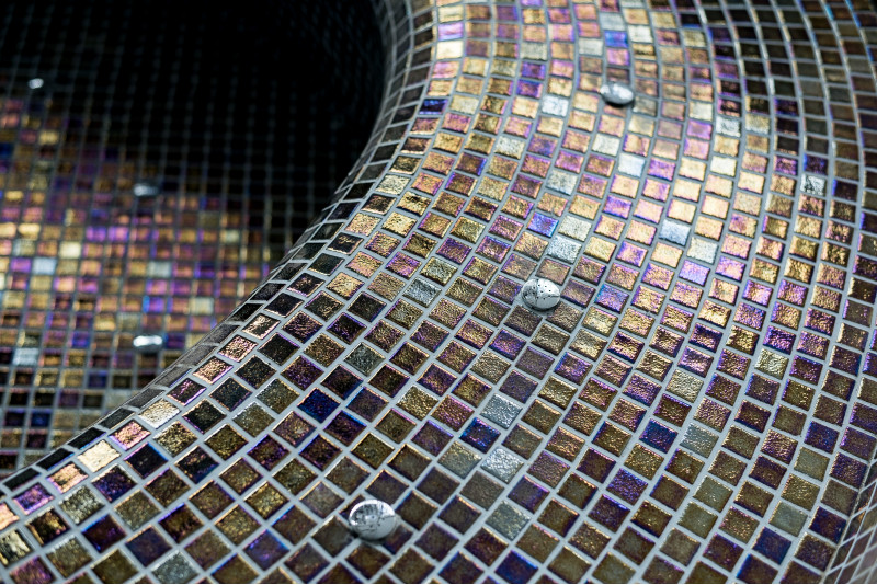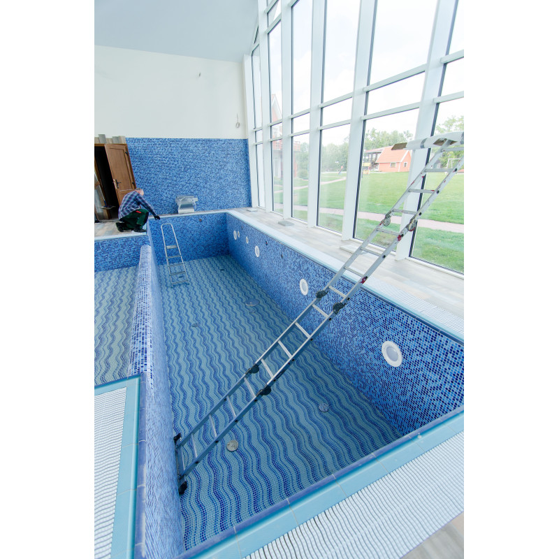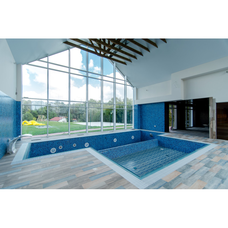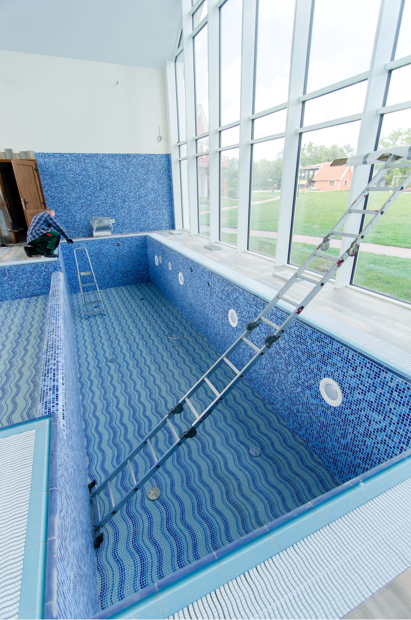 Piscine d'hydromassage - 8 places. Equipé de béton. L'intérieur est recouvert de carreaux de mosaïque. Luminaire sous-marin à LED, jets de massage, équipement de filtration, équipement de dosage automatique de produits chimiques.
