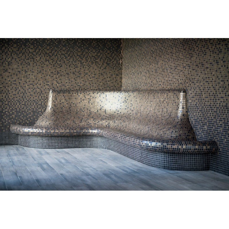 Banc chauffant. Banc chauffant ergonomique avec dossier en L avec raccordement eau chaude à la chaleur fournie, avec renfort et imperméabilisation.