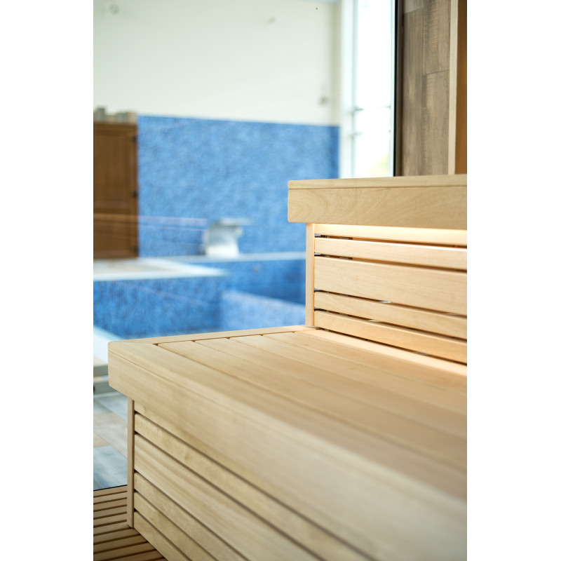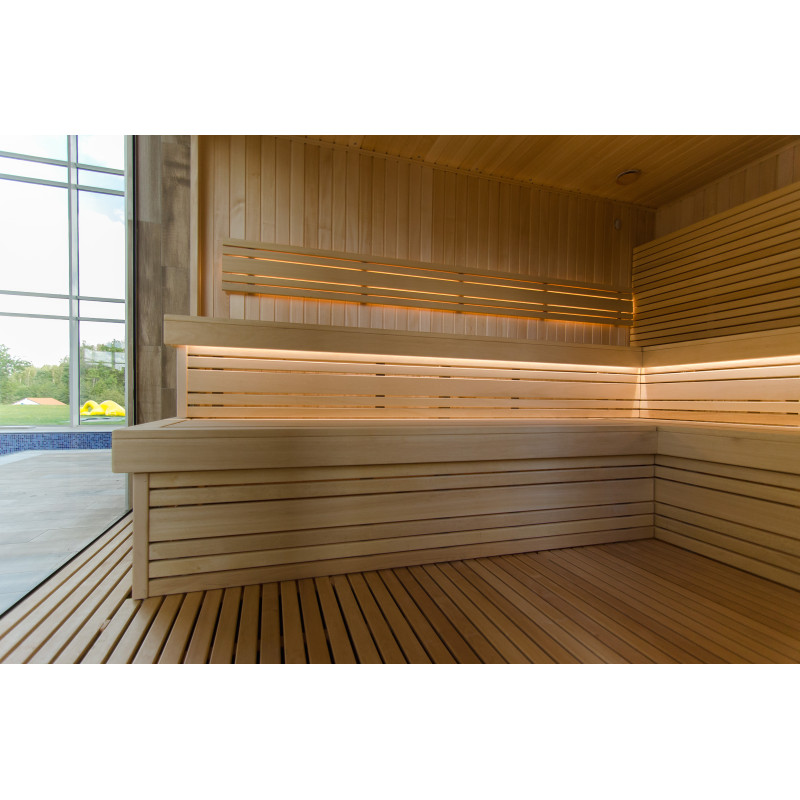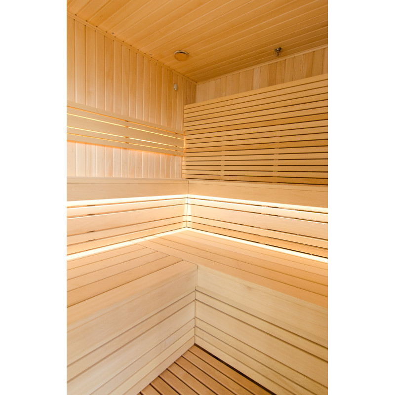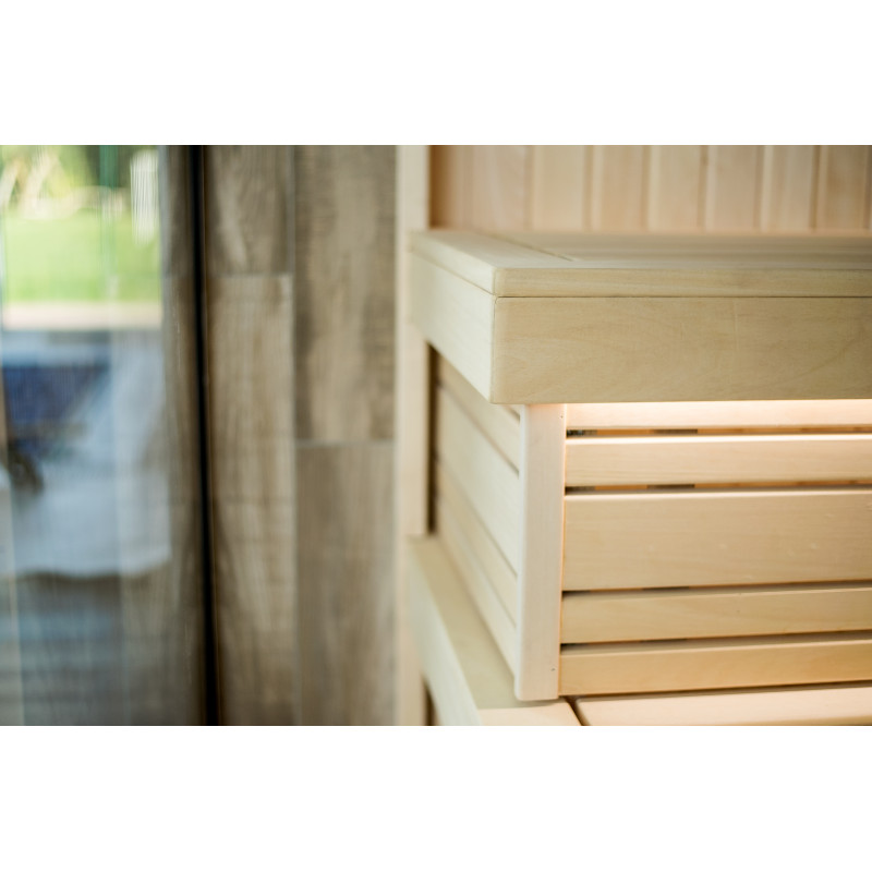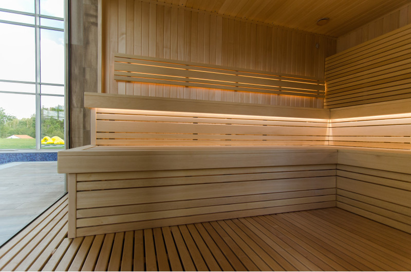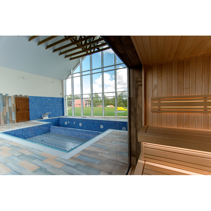 Sauna. Les détails en bois intérieurs du sauna sont en bois d'abachi, le plafond et les murs sont en bois de juillet. Caractéristiques: