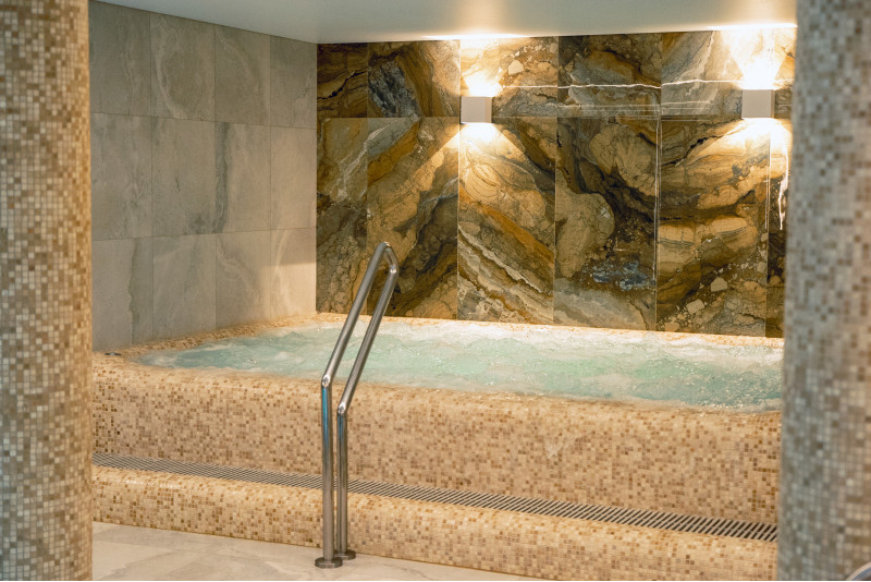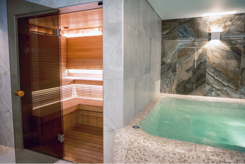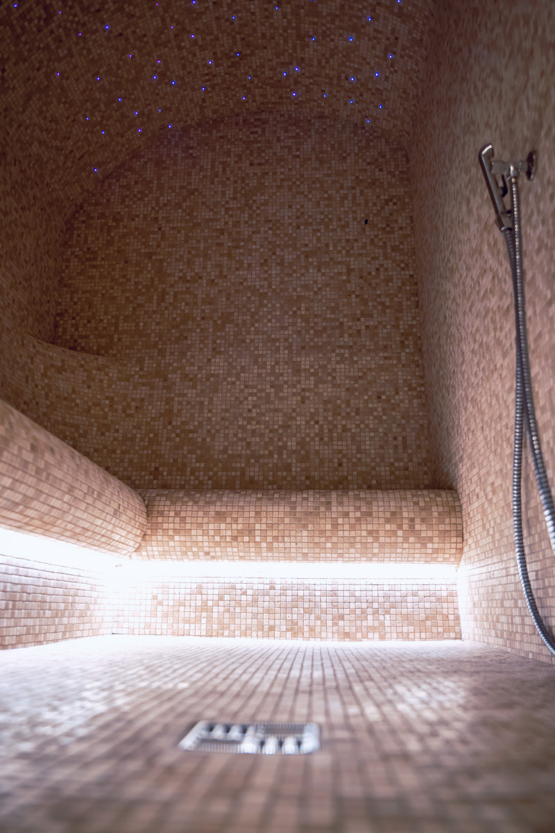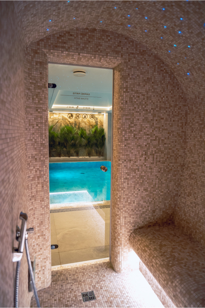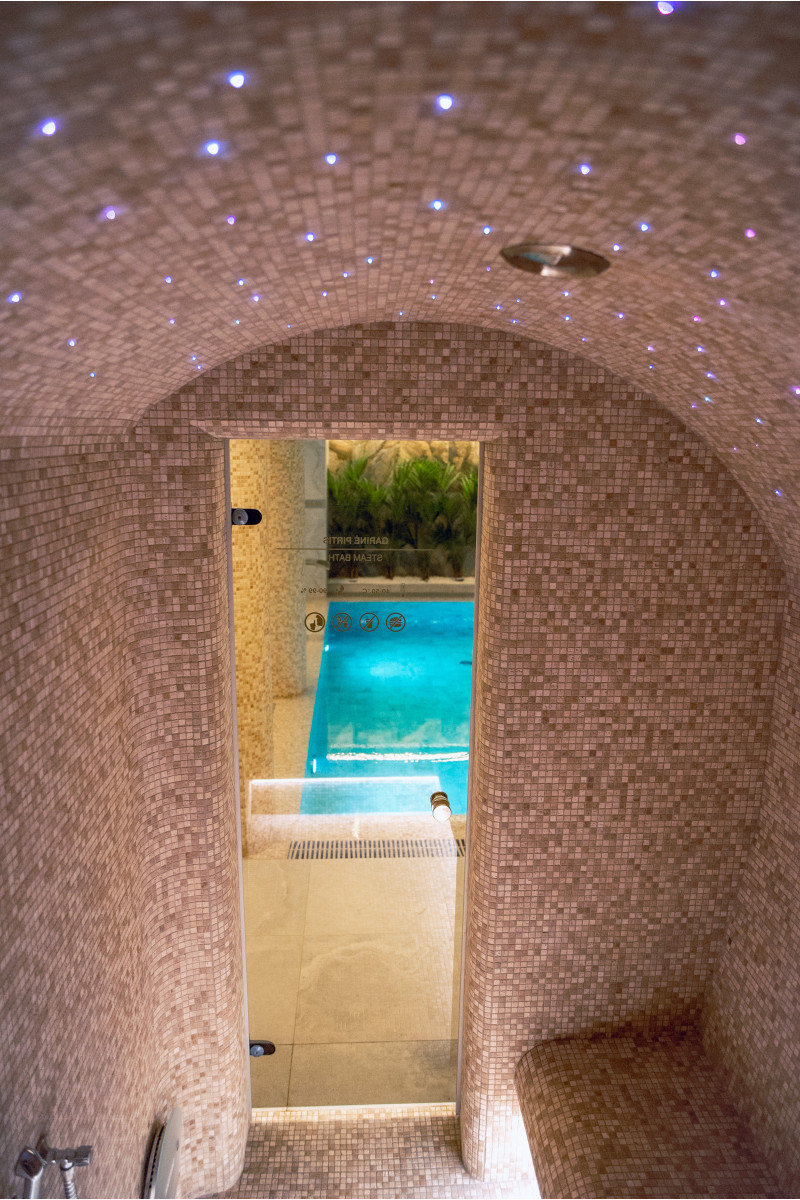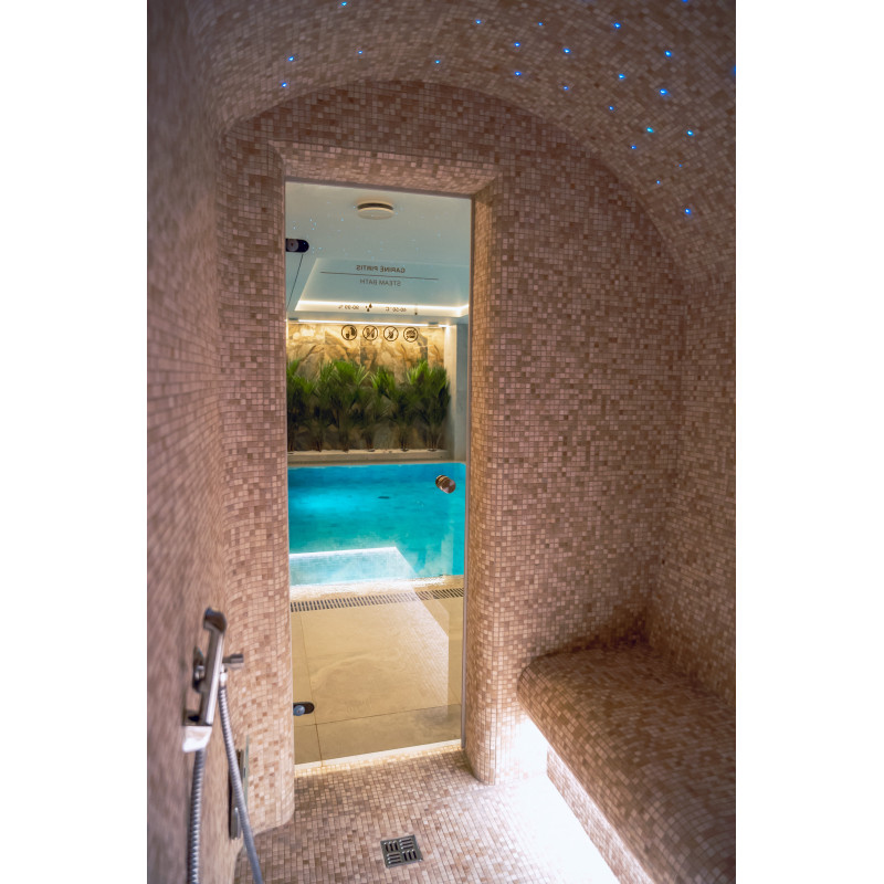 Le complexe comprend un hammam, un sauna, un générateur de glace et une piscine avec jet de massage et bain à remous.