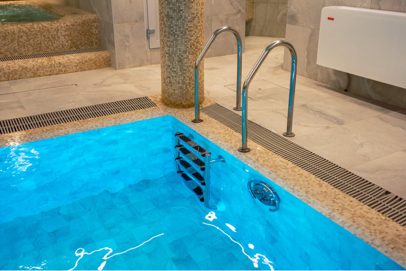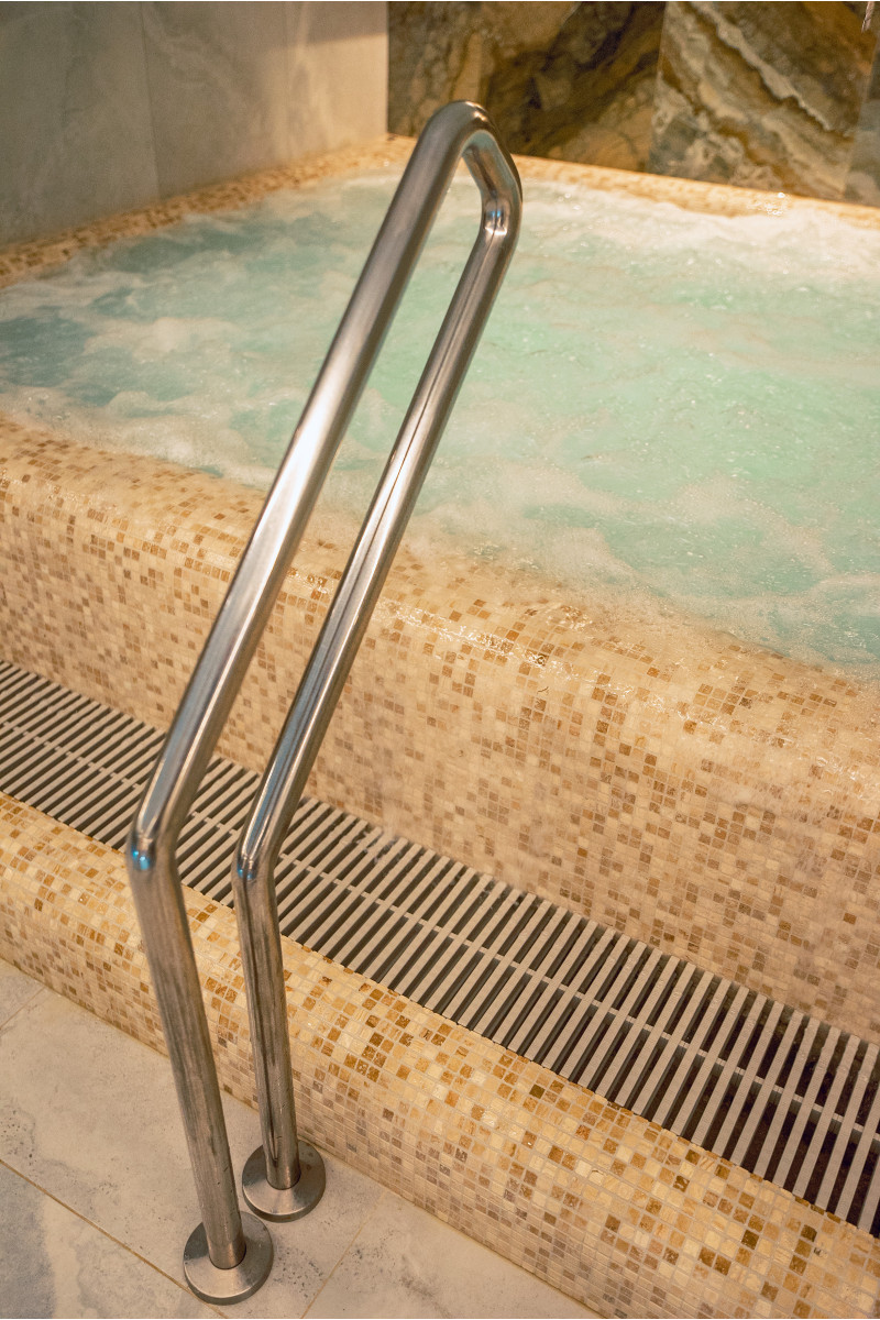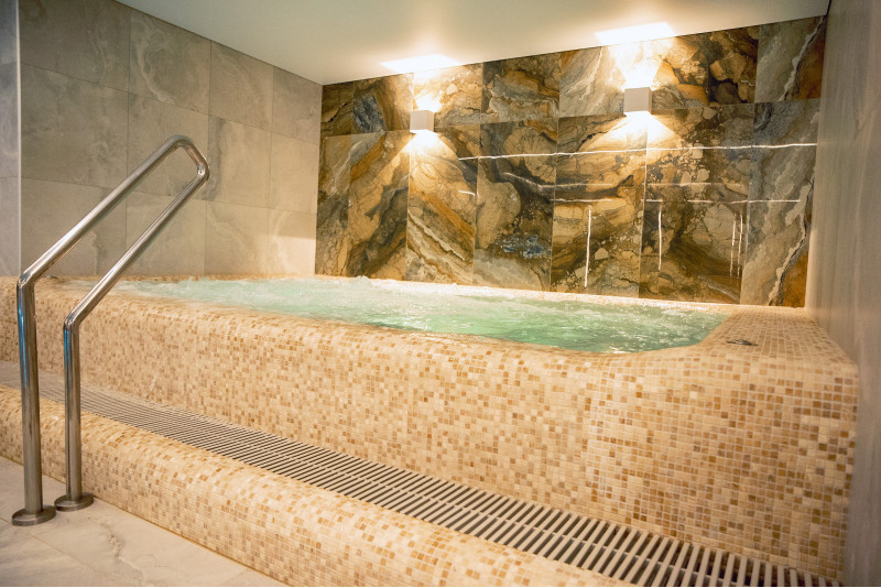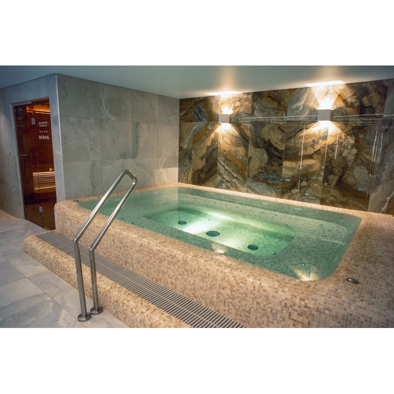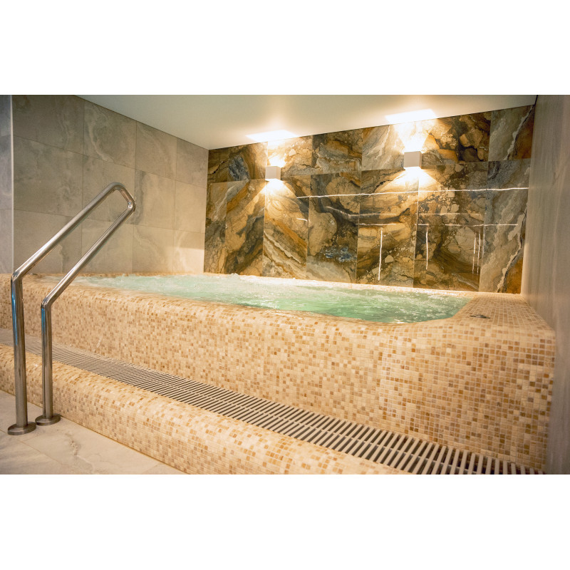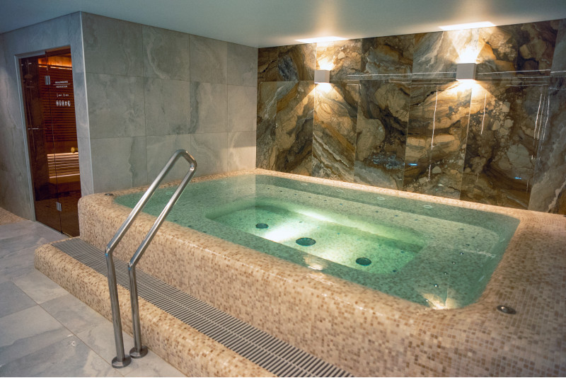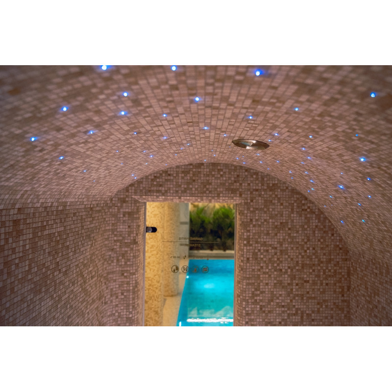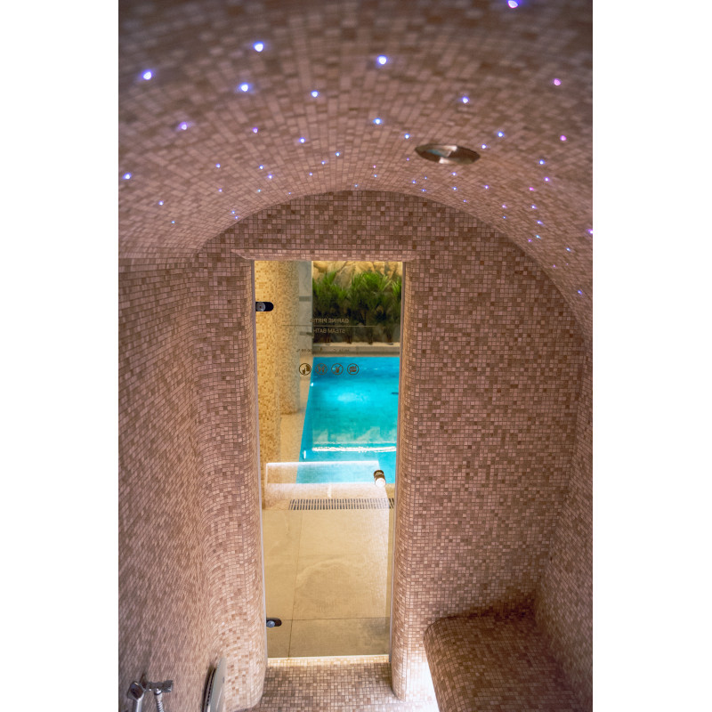 Le complexe comprend un hammam, un sauna, un générateur de glace et une piscine avec jet de massage et bain à remous.
