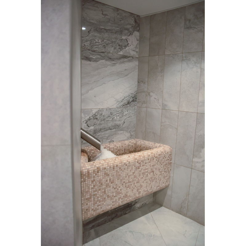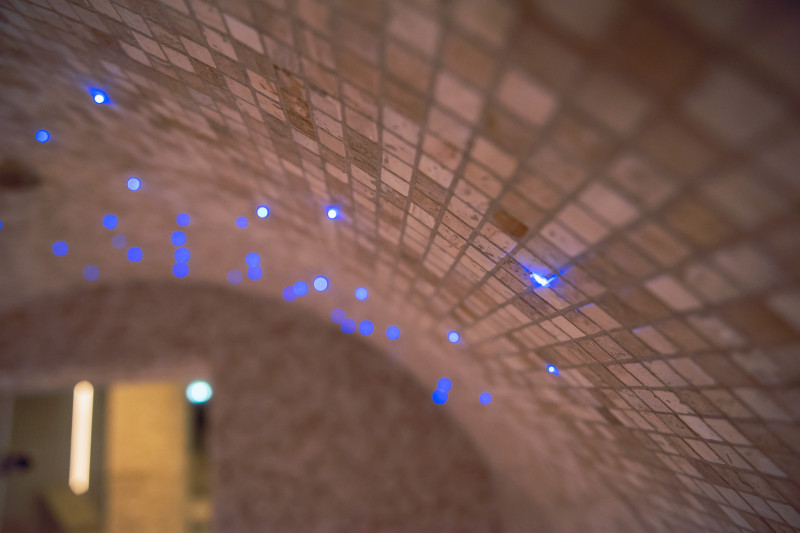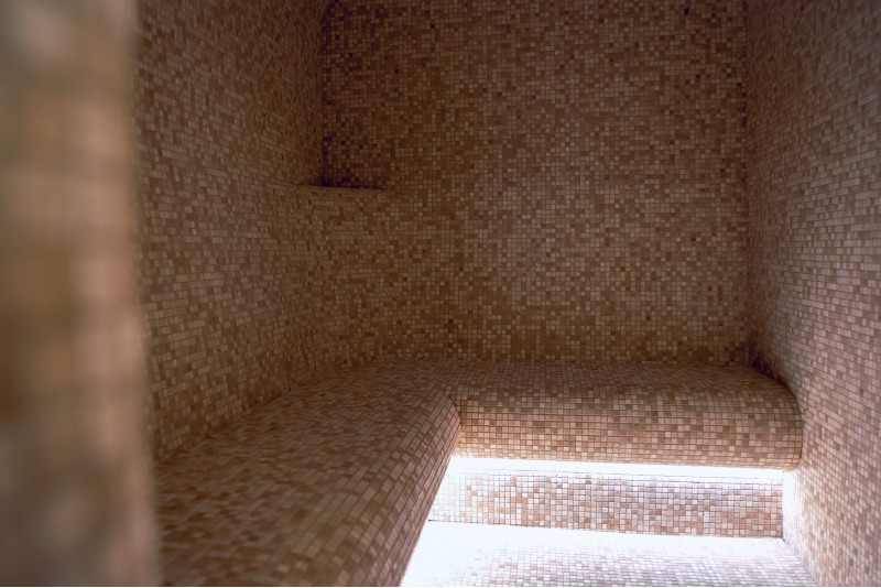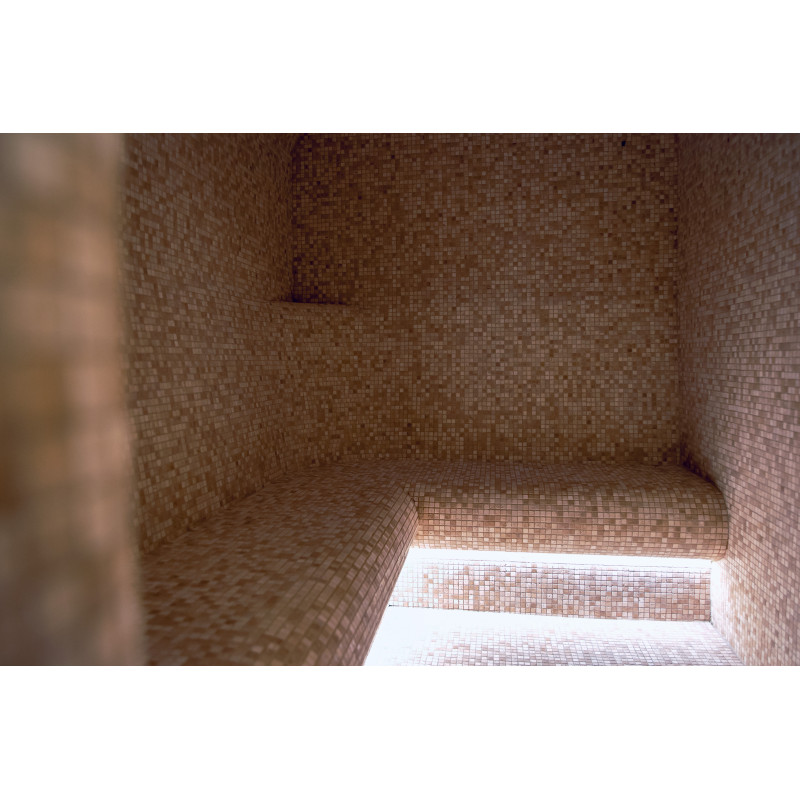 Les surfaces intérieures sont moulées en polystyrène expansé à l'aide de styrène XPS coupé en continu. Une arche de plafond est formée. Des carreaux de mosaïque sont posés. Un système de ventilation est installé.