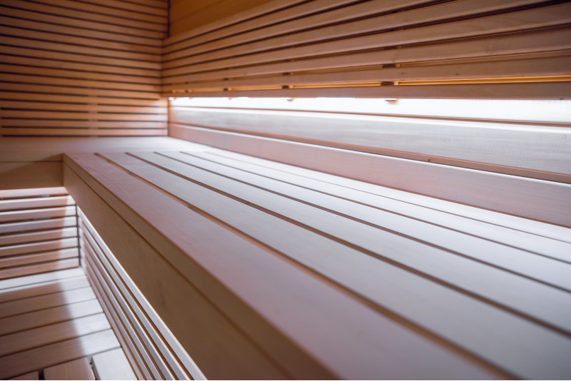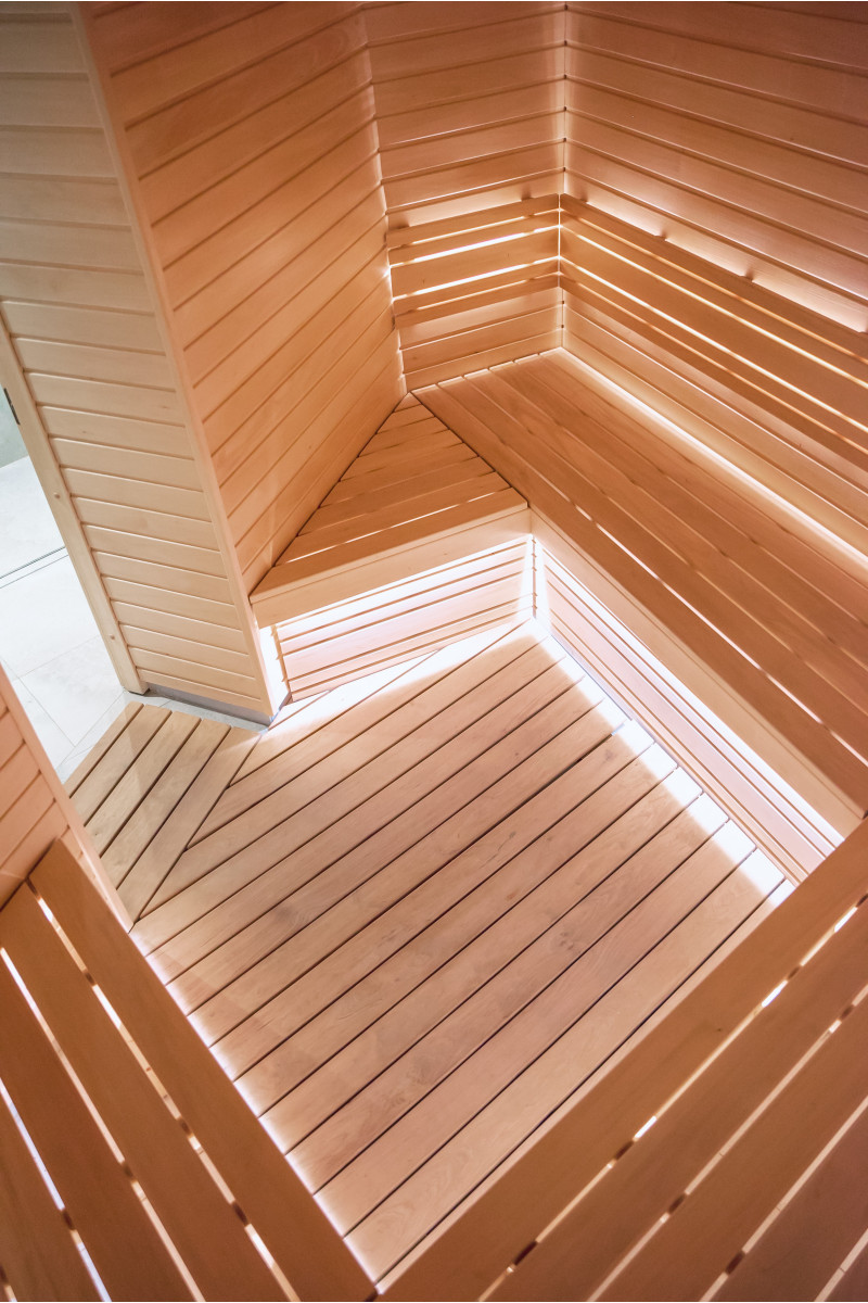 Les détails en bois intérieurs du sauna sont en bois de tilleul.