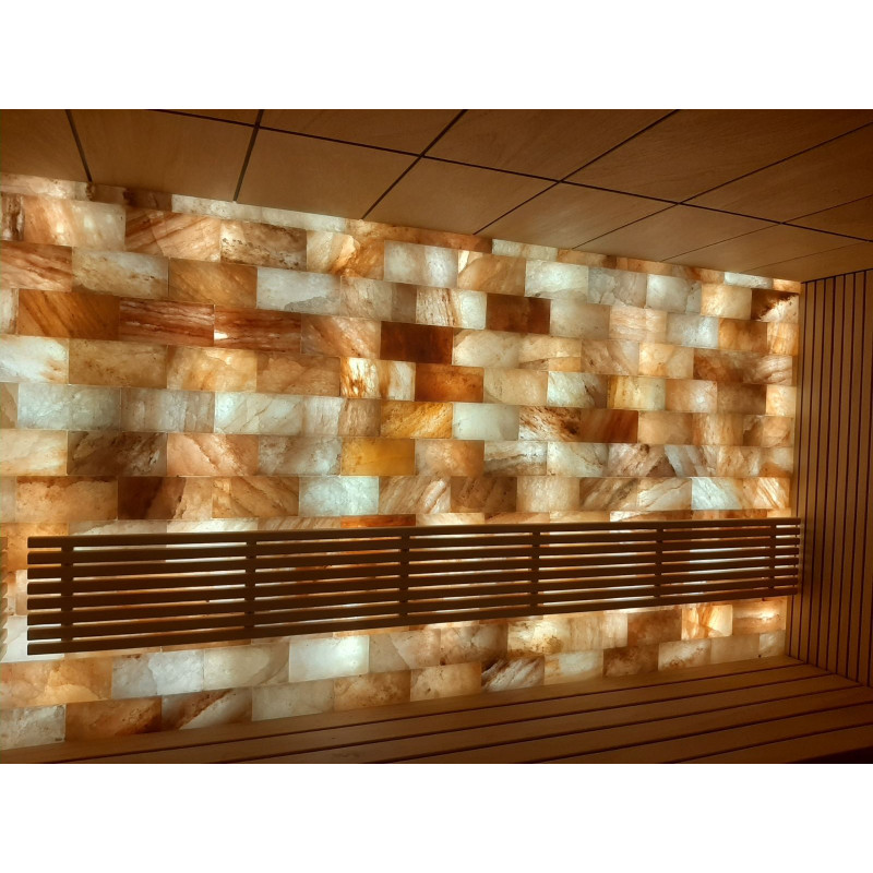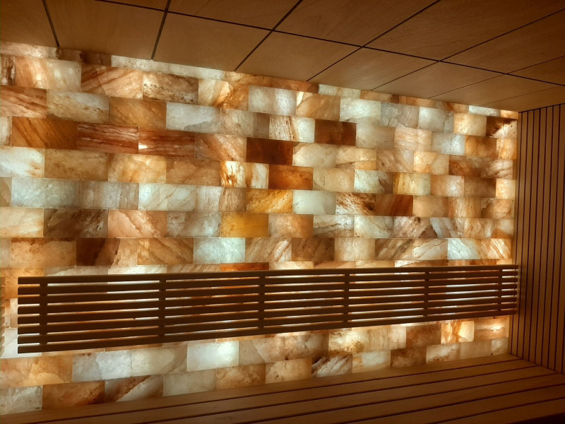 - Sauna au sel de l'Himalaya - Le sel de l'Himalaya est l'un des sels les plus reconnus au monde. Le sel de l'Himalaya améliore la qualité de l'air intérieur, réduit les symptômes d'allergie et d'asthme, améliore l'humeur et fournit de l'énergie. Le sel de l'Himalaya est choisi non seulement en raison de ses propriétés positives pour la santé. L'éclairage sous les briques de sel de l'Himalaya a créé un environnement particulièrement confortable et impressionnant.