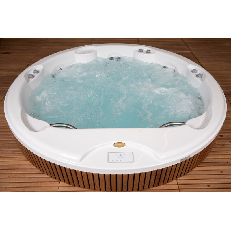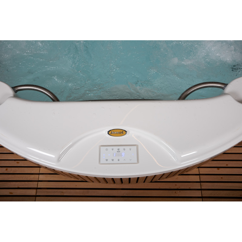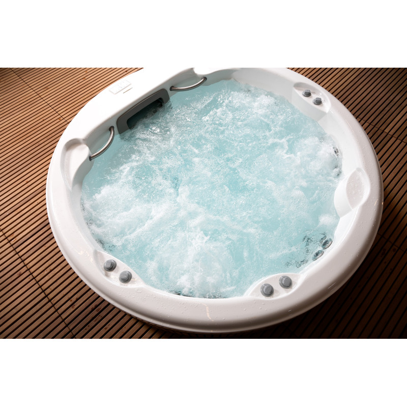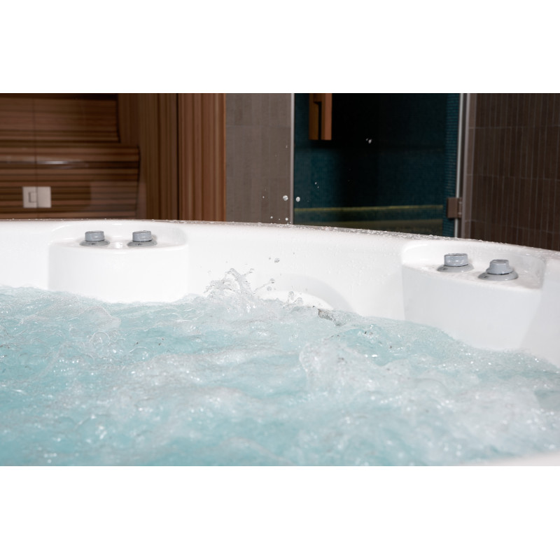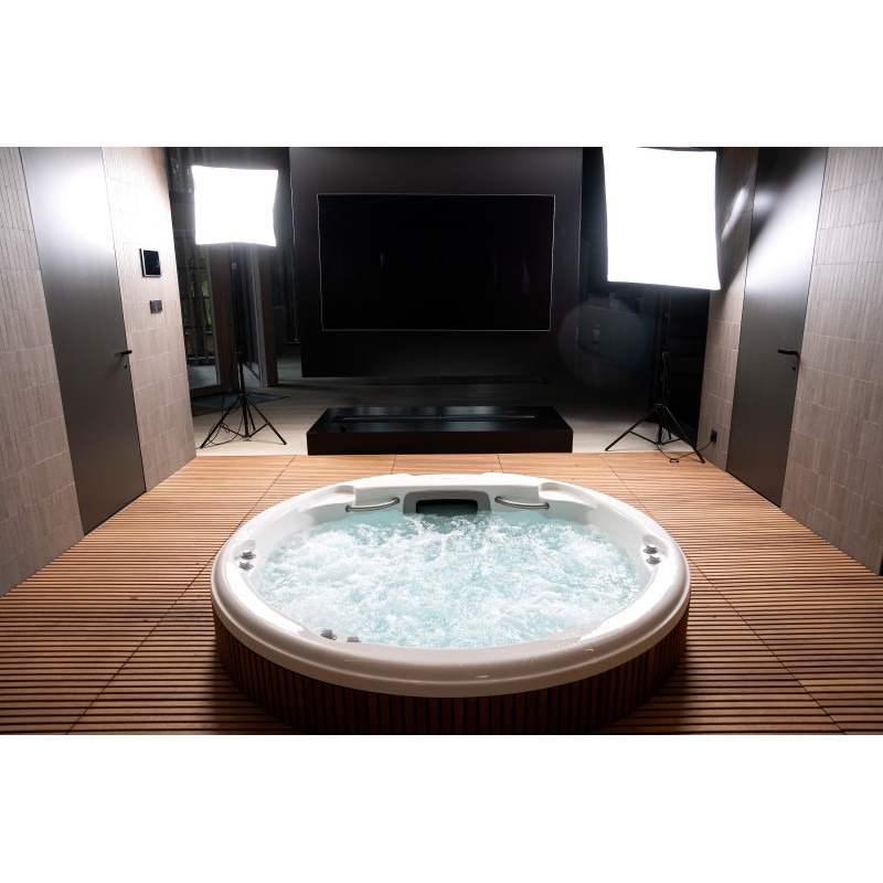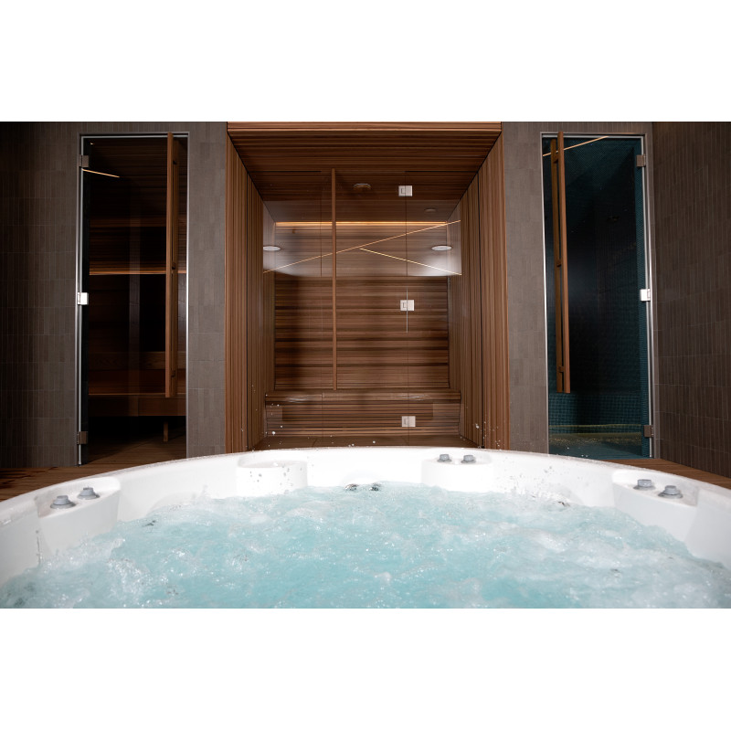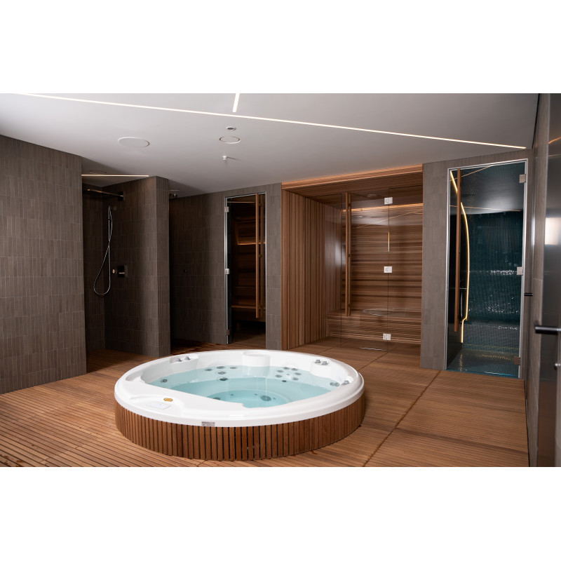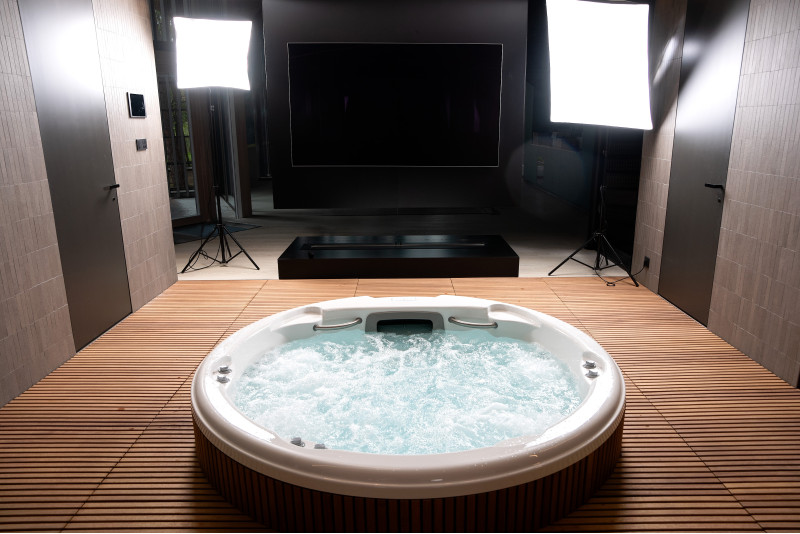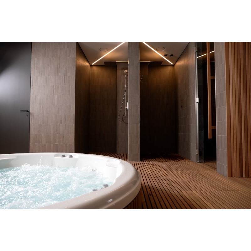 Pour ce projet, le choix s'est porté sur une piscine d'hydromassage du fabricant d'origine « Jacuzzi ». Toutes les procédures de raccordement, de mise en service et de test ont été réalisées conformément aux normes techniques. Cette piscine, symbole de confort et de fiabilité, garantit une expérience de détente optimale.
