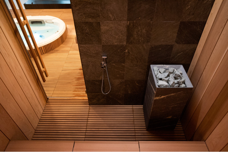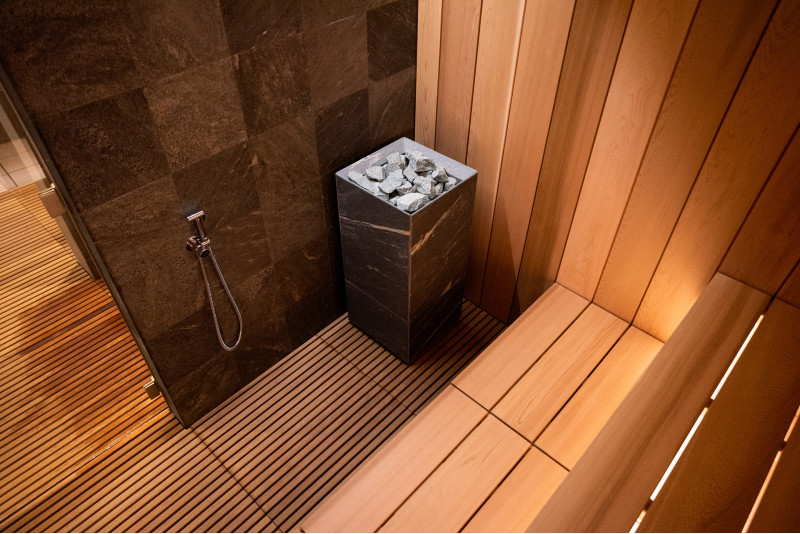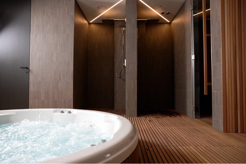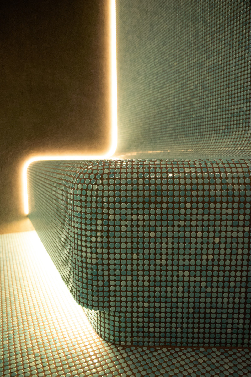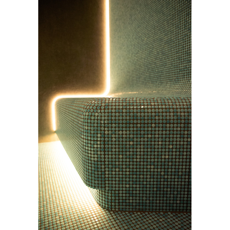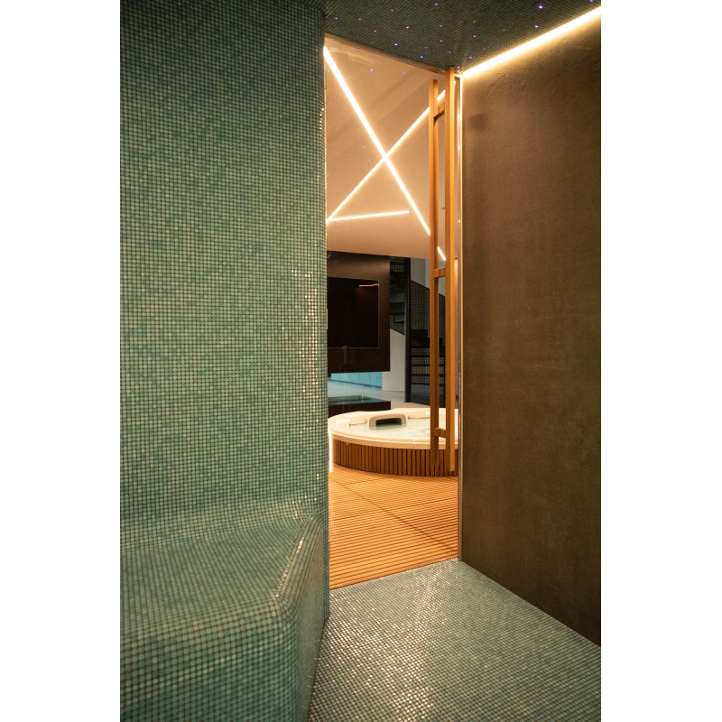 Un bain de vapeur a également été installé dans l'espace SPA, doté de solutions techniques avancées :