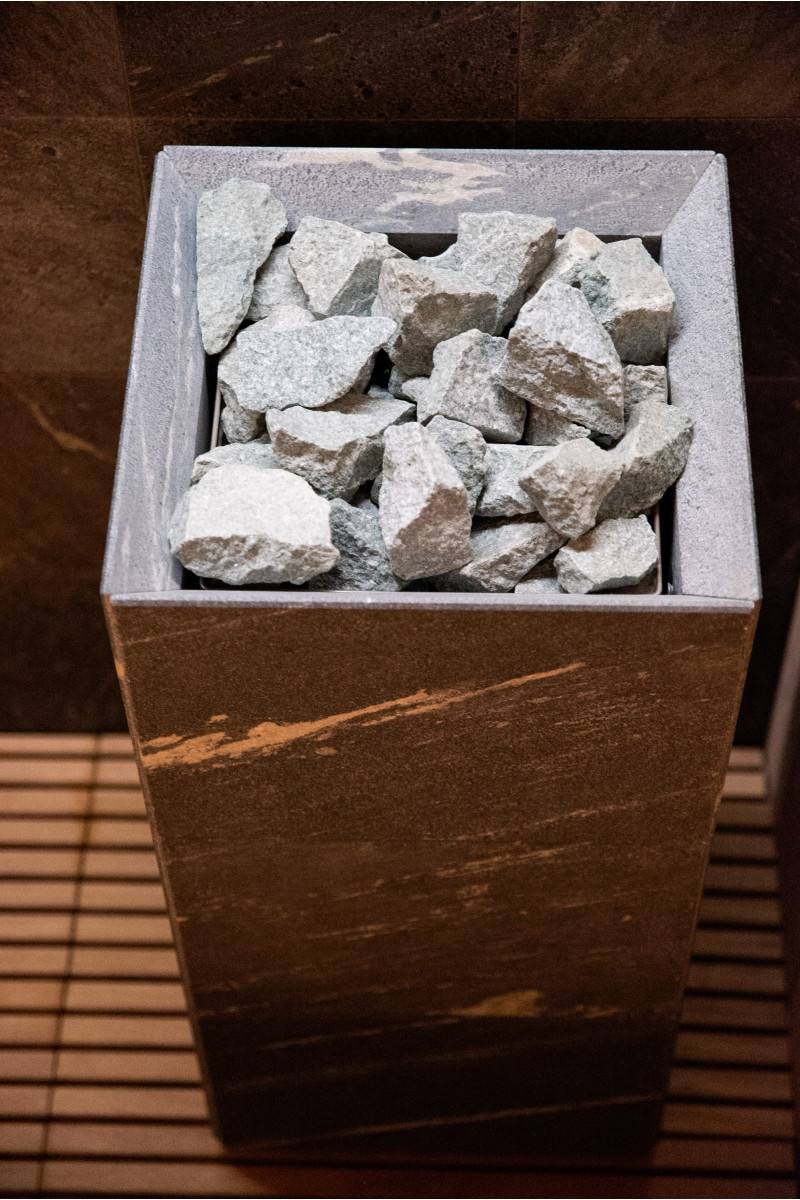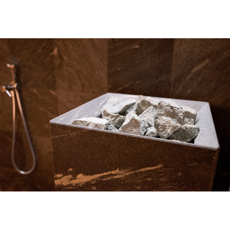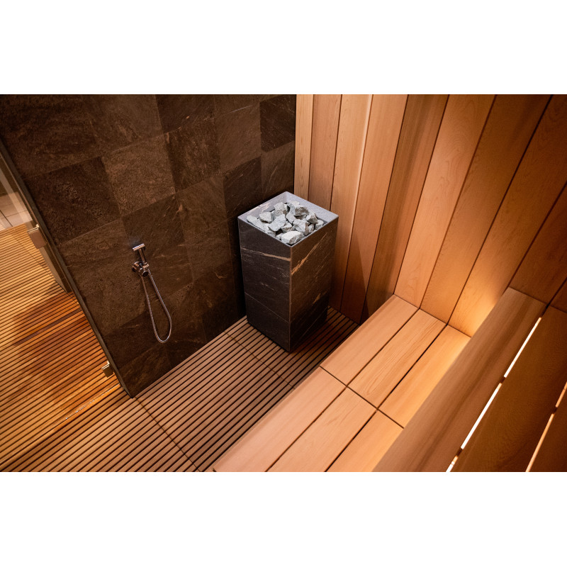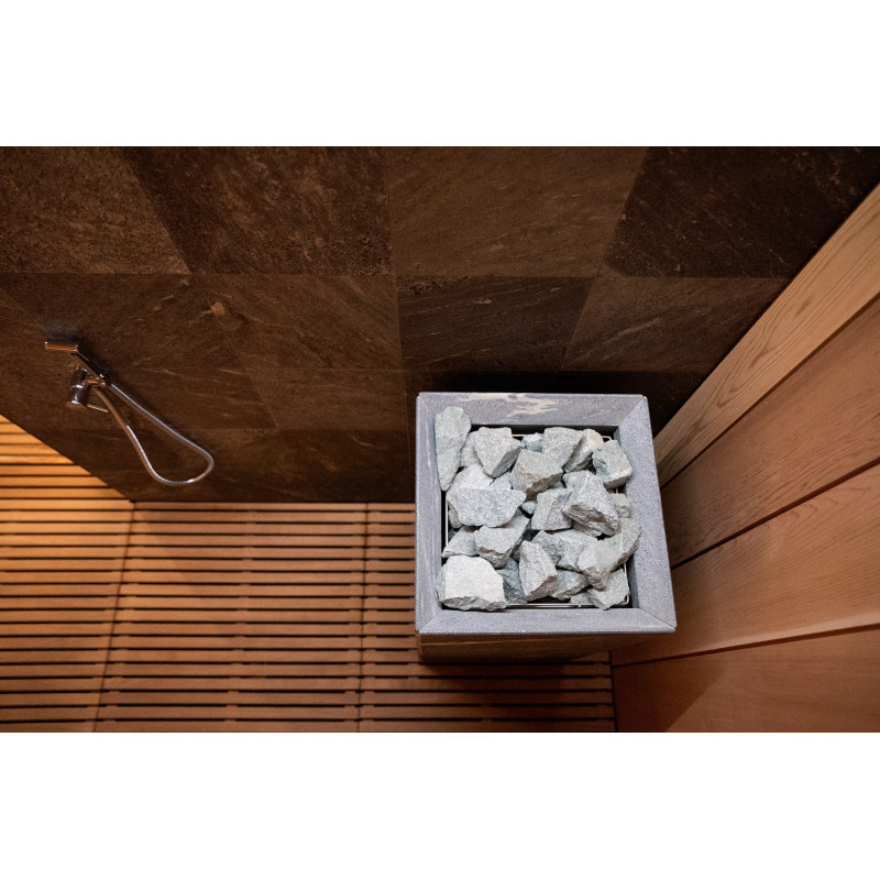 Poêle de sauna électrique Tulikivi Tuisku Nobile avec commande Harvia Xenio Combi CX110C et un générateur de vapeur Harvia 4,5 kW ;