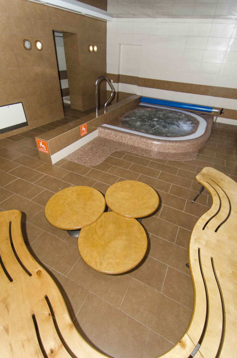 Les formes du bain à remous sont en polystyrène extrudé spécial, selon la commande individuelle. La piscine peut accueillir plusieurs personnes à la fois, car les sièges sont disposés autour de toute la piscine.