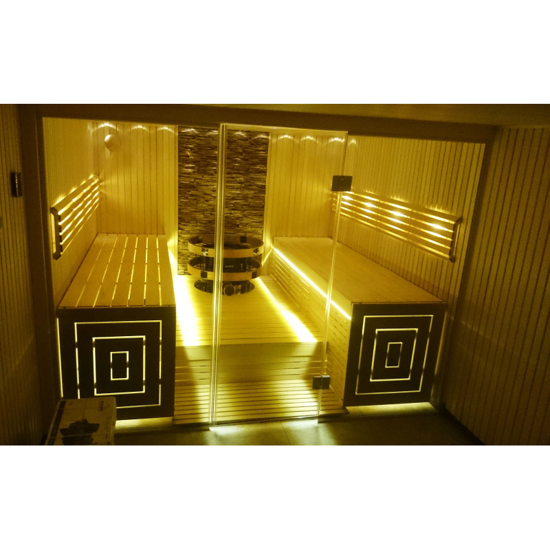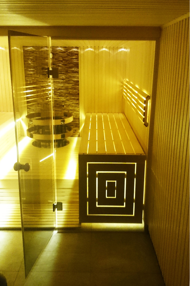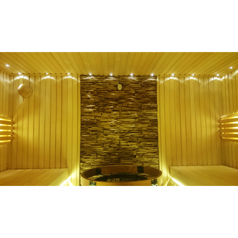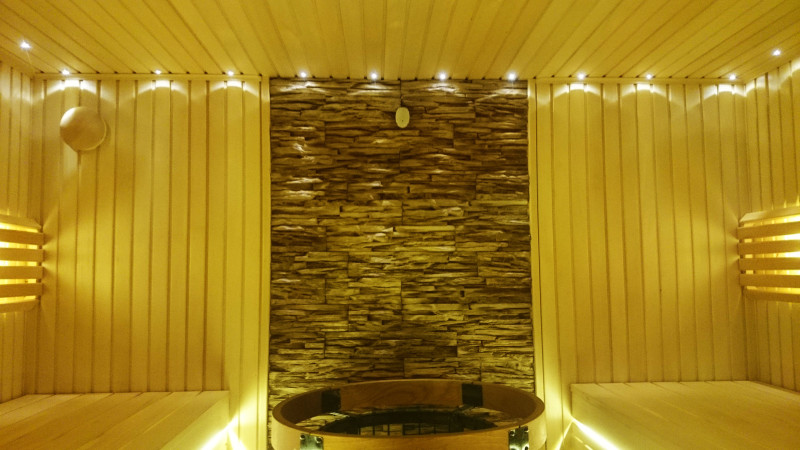 Le bois de tilleul de la plus haute qualité a été choisi pour la décoration du sauna.