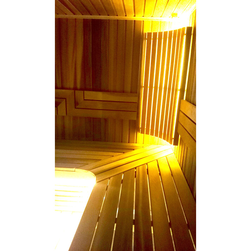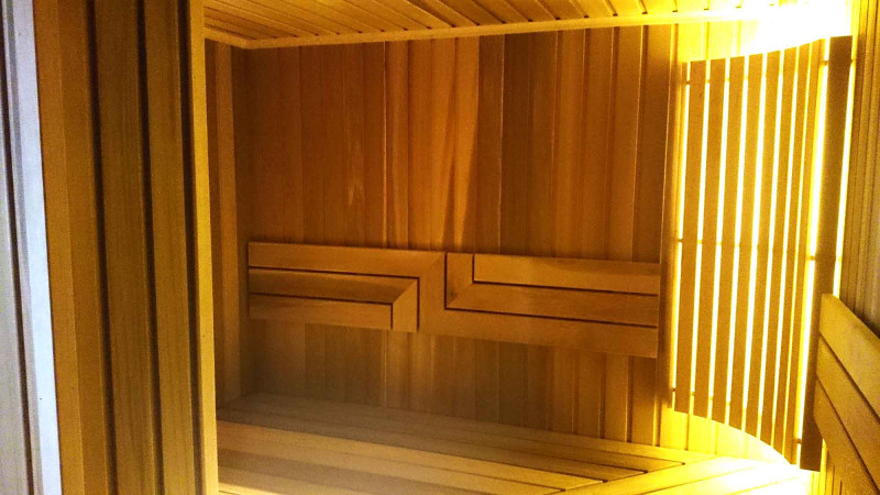 La station balnéaire française de Cannes dispose d'un sauna en bois de cèdre de la plus haute qualité. C'est un bois qui émet des huiles essentielles naturelles. Le cèdre est naturellement résistant à l'humidité, de sorte que le bois ne se déforme pas, ne s'enroule pas et ne rétrécit pas. Il a des propriétés désinfectantes et antibactériennes. C'est un excellent choix pour les personnes souffrant d'allergies ou de maladies respiratoires, car il dégage un arôme naturel apaisant.