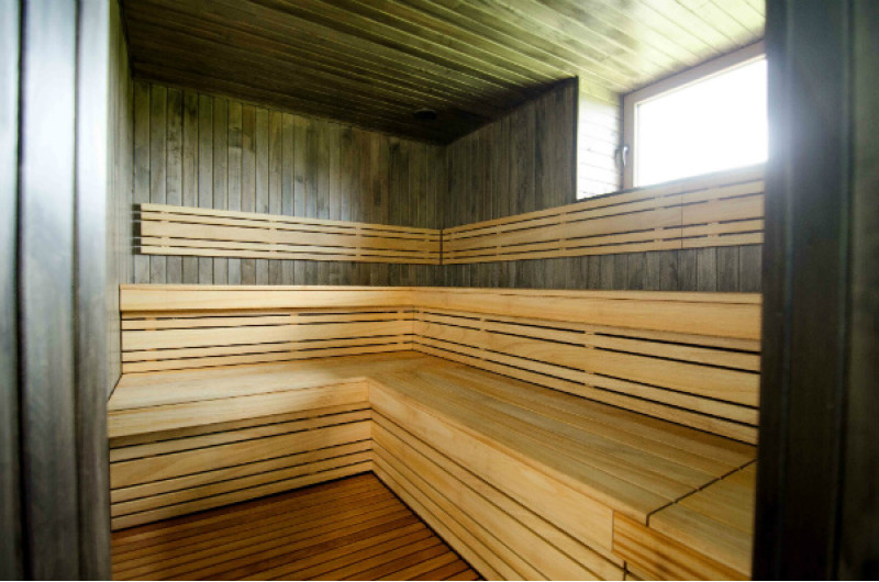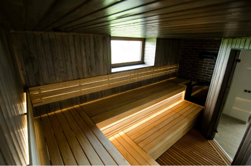 La fenêtre du sauna donne à la pièce plus de lumière et une plus grande sensation d'espace.