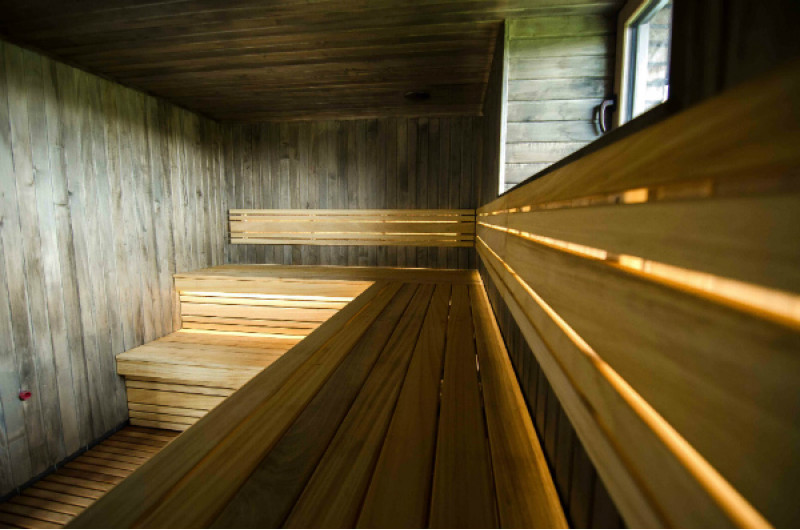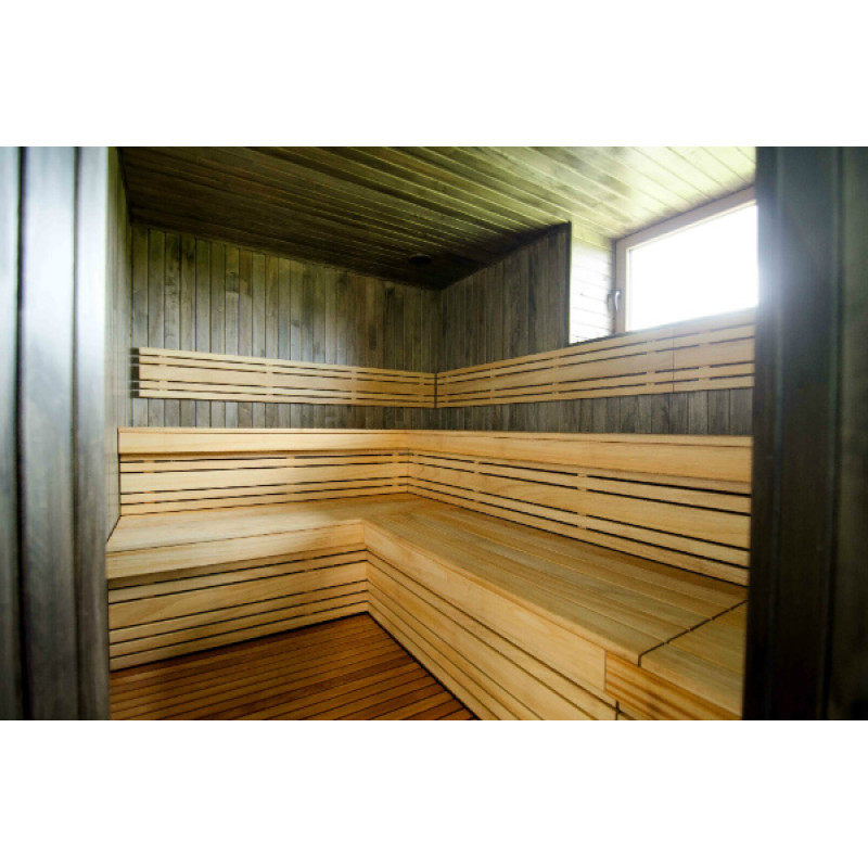 Le bois du sauna est ciré, huilé, prêt pour une utilisation à long terme du sauna.