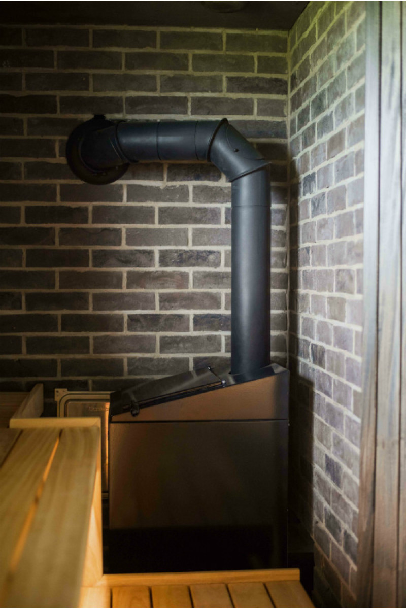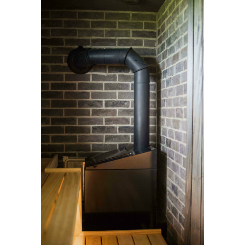 Le poêle de sauna à bois sélectionné est le Narvi Steam Master Tunnel WT. Il s'agit d'un poêle de sauna à accumulation de chaleur de très haute qualité. Ce radiateur peut contenir jusqu'à 100 kg de pierres. Lorsque vous ouvrez le couvercle supérieur du radiateur et versez de l'eau sur les pierres chaudes, vous obtenez une vapeur agréable et abondante.
