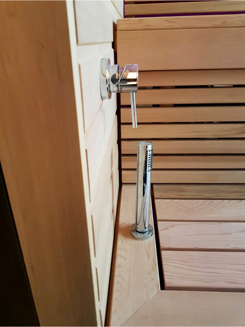 Le sauna est équipé de haut-parleurs résistants à la chaleur et à l'humidité.