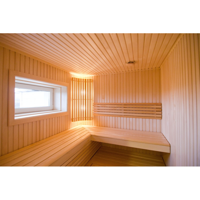 Le sauna dispose également d'une fenêtre qui donne à la pièce plus d'espace et de lumière.