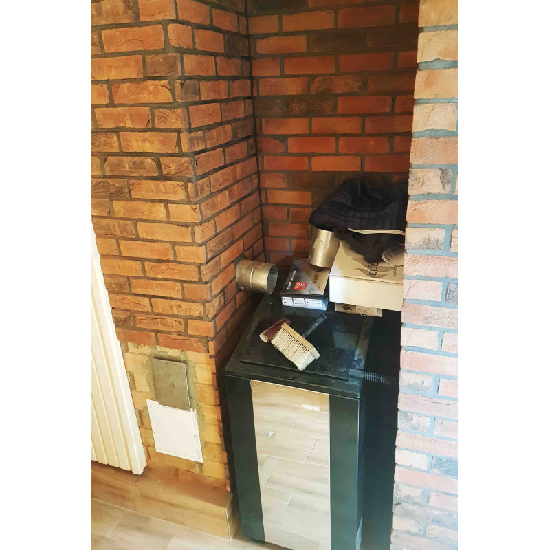 Le radiateur peut contenir jusqu'à 100 kg de pierres. Large foyer extérieur. Recommandé de 10 m3 à 25 m3 pour les saunas. Crée beaucoup de vapeur abondante et agréable dans le sauna, chauffe assez rapidement et retient la chaleur pendant longtemps. Rempli de pierres de diabase d'olivine, dont le relief est formé par la fissuration, il accumule donc plus de chaleur et l'eau s'évapore beaucoup plus rapidement en raison de la grande surface.