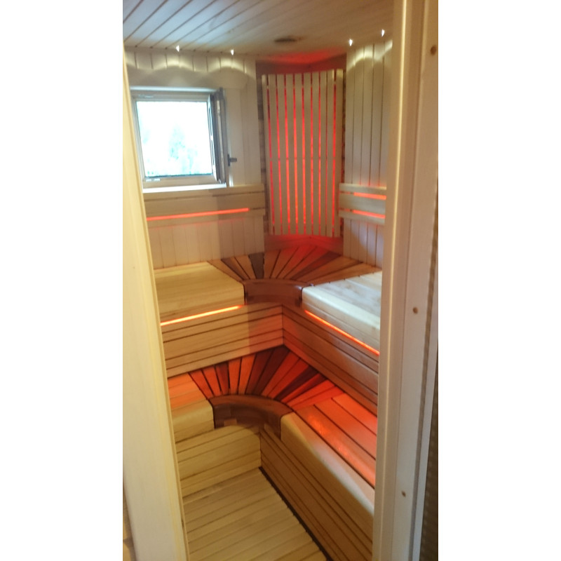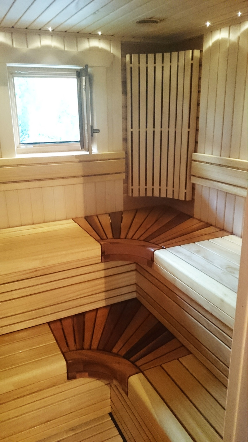 La fenêtre dans le sauna fournit plus de lumière et augmente l'espace du sauna.